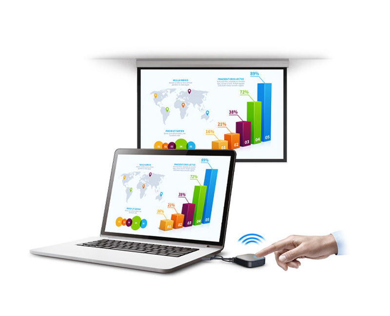 With no driver needed, InstaShow ensures that its users can start the meeting by plug-n-play. Click the button to project an image directly and provide a considerate LED design to show connection status.