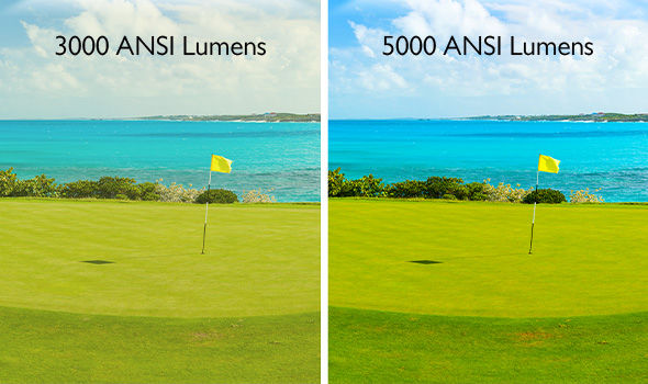 A quality golf simulator system requires enough light in the room to see the club path, strike angles, and ball spin to accurately track your shot. That means your projector needs to be brighter than a regular home theater projector. For a smaller screen with a square aspect ratio, a 3000 lumen short throw projector will provide enough brightness. For larger screens, most systems use 4000 or 5000 lumen projector to show bright and vibrant images in normally lit playing area.