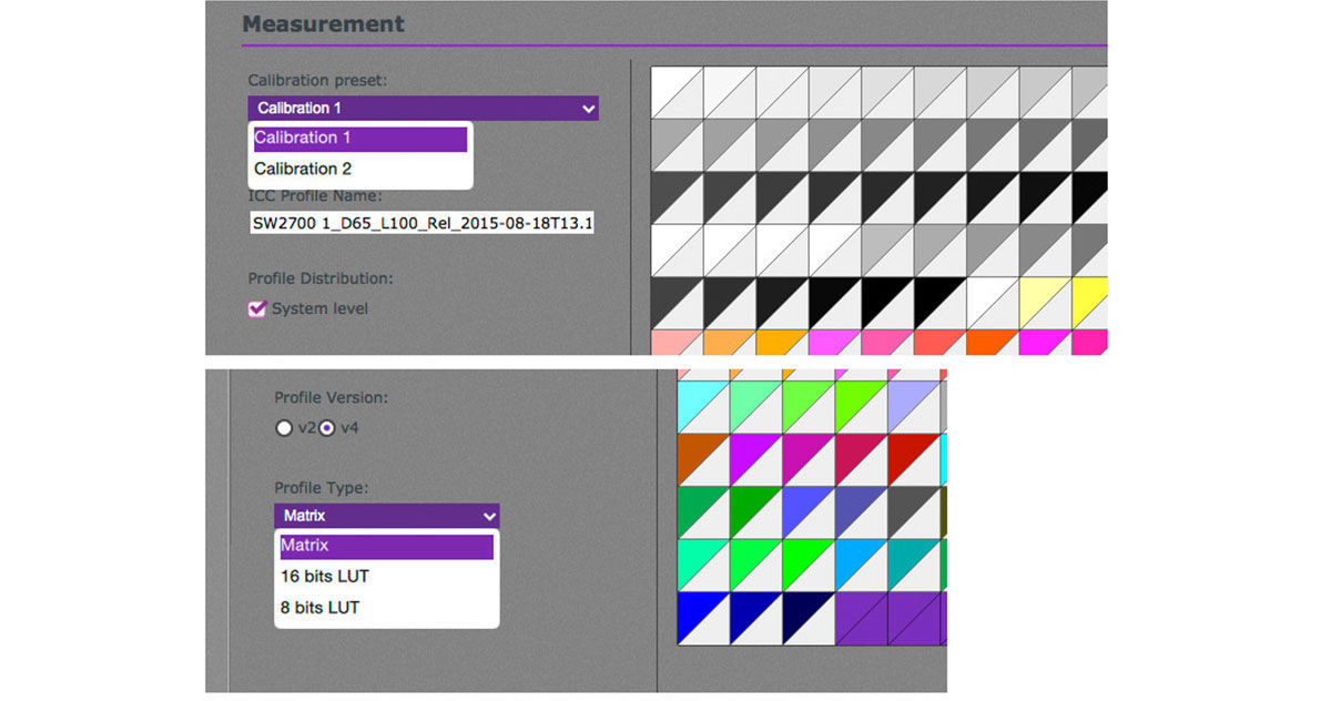 There is a choice of monitor profile types - initial experiments suggested that the matrix setting worked well.