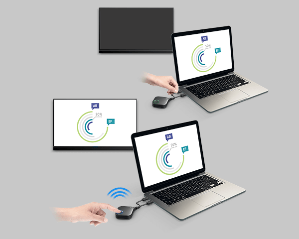 With no driver needed, InstaShow ensures that its users can start the meeting by plug-n-play. Click the button to project an image directly and provide a considerate LED design to show connection status.