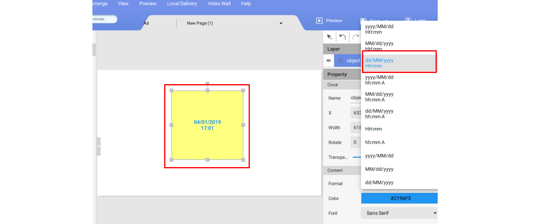 1. In X-Sign Designer, click on the icon to add a clock widget, and you will be prompted to place the clock widget.