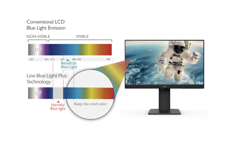 Eight hours in front of a monitor can expose you to 5.8 million flickers on your screen. That can mean eye strain, blurred vision, headaches, and interrupted sleep patterns. BenQ’s Flicker-free technology, certified by international TÜV Rheinland, eliminates flicker. While you’re looking at your display, your BenQ monitor is looking after your eyes.